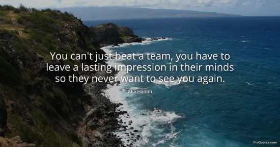 Mia Hamm distills a competitor's aim: not merely to outscore an opponent, but to forge an aura that lingers long after the final whistle. The lasting impression is built through total commitment, relentless pressure, and flawless execution so thorough that the other side dreads encountering that standard again. It is a philosophy of dominance that is not about taunting or showboating; it is about performance so exacting that it reshapes the opponent’s expectations and confidence.