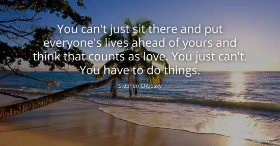 Chbosky, Stephen. (2026, January 15). You can't just sit there and put everyone's lives ahead of yours and think that counts as love. You just can't. You have to do things. FixQuotes. https://fixquotes.com/quotes/you-cant-just-sit-there-and-put-everyones-lives-172994/