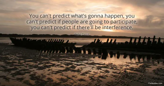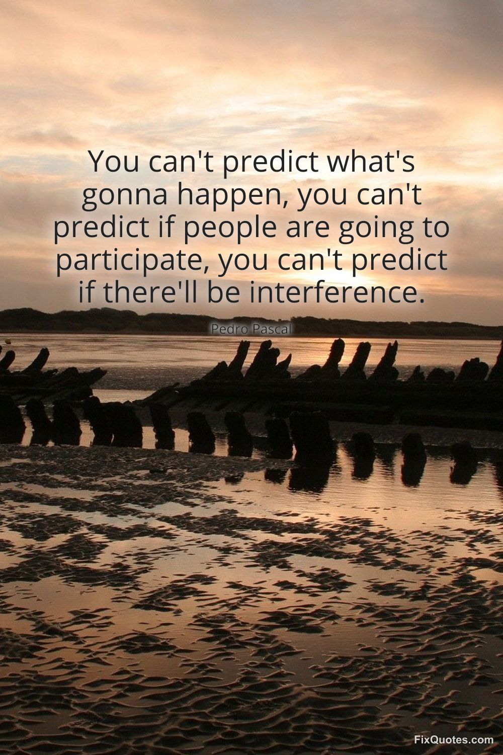 Pascal, Pedro. (2026, February 9). You can't predict what's gonna happen, you can't predict if people are going to participate, you can't predict if there'll be interference. FixQuotes. https://fixquotes.com/quotes/you-cant-predict-whats-gonna-happen-you-cant-184983/