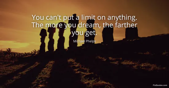Phelps, Michael. "You can't put a limit on anything. The more you dream, the farther you get." FixQuotes. February 12, 2026. https://fixquotes.com/quotes/you-cant-put-a-limit-on-anything-the-more-you-124737/.