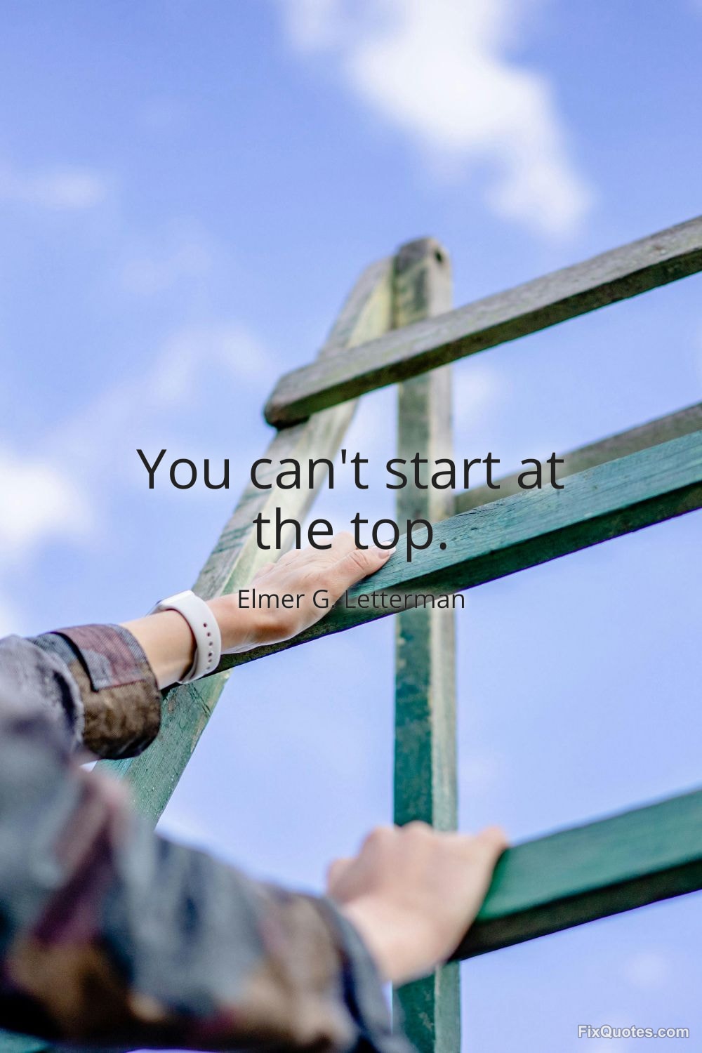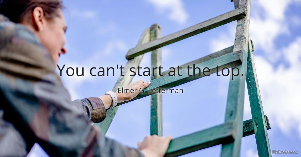 A five-word gut check that sounds like common sense until you notice the quiet rebuke inside it. "You can't start at the top" isn’t motivational wallpaper; it’s a boundary marker. It shuts down the fantasy of skipping the messy middle: the apprenticeship, the false starts, the unglamorous competence-building that every real system quietly requires but rarely celebrates.