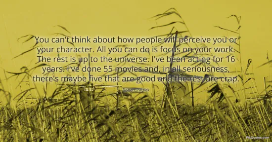 "You can't think about how people will perceive you or your character. All you can do is focus on your work. The rest is up to the universe. I've been acting for 16 years. I've done 55 movies and, in all seriousness, there's maybe five that are good and the rest are crap." FixQuotes, 16 Jan. 2026, https://fixquotes.com/quotes/you-cant-think-about-how-people-will-perceive-you-135287/. Accessed 18 Feb. 2026.