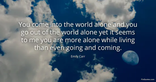 Carr, Emily. "You come into the world alone and you go out of the world alone yet it seems to me you are more alone while living than even going and coming." FixQuotes. January 14, 2026. https://fixquotes.com/quotes/you-come-into-the-world-alone-and-you-go-out-of-59337/.