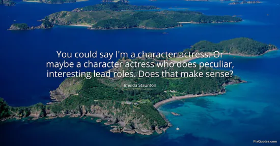 Staunton, Imelda. (2026, January 17). You could say I'm a character actress. Or maybe a character actress who does peculiar, interesting lead roles. Does that make sense? FixQuotes. https://fixquotes.com/quotes/you-could-say-im-a-character-actress-or-maybe-a-73151/