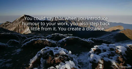 Trier, Lars von. "You could say that when you introduce humour to your work, you also step back a little from it. You create a distance." FixQuotes. January 16, 2026. https://fixquotes.com/quotes/you-could-say-that-when-you-introduce-humour-to-112913/.