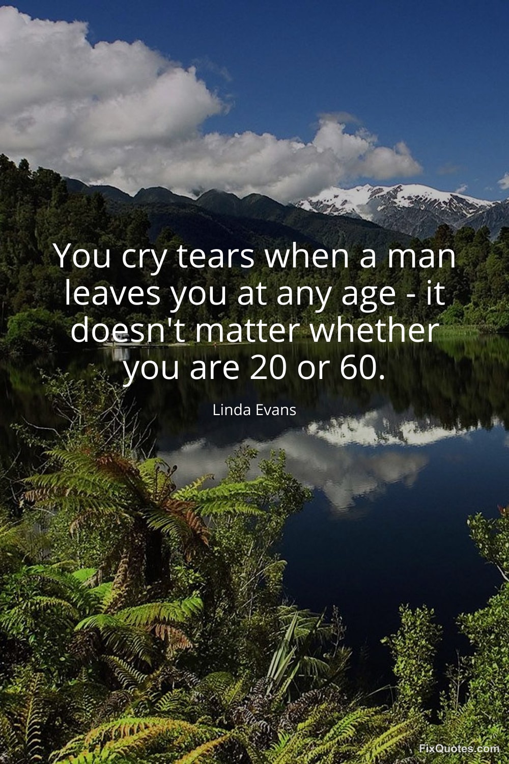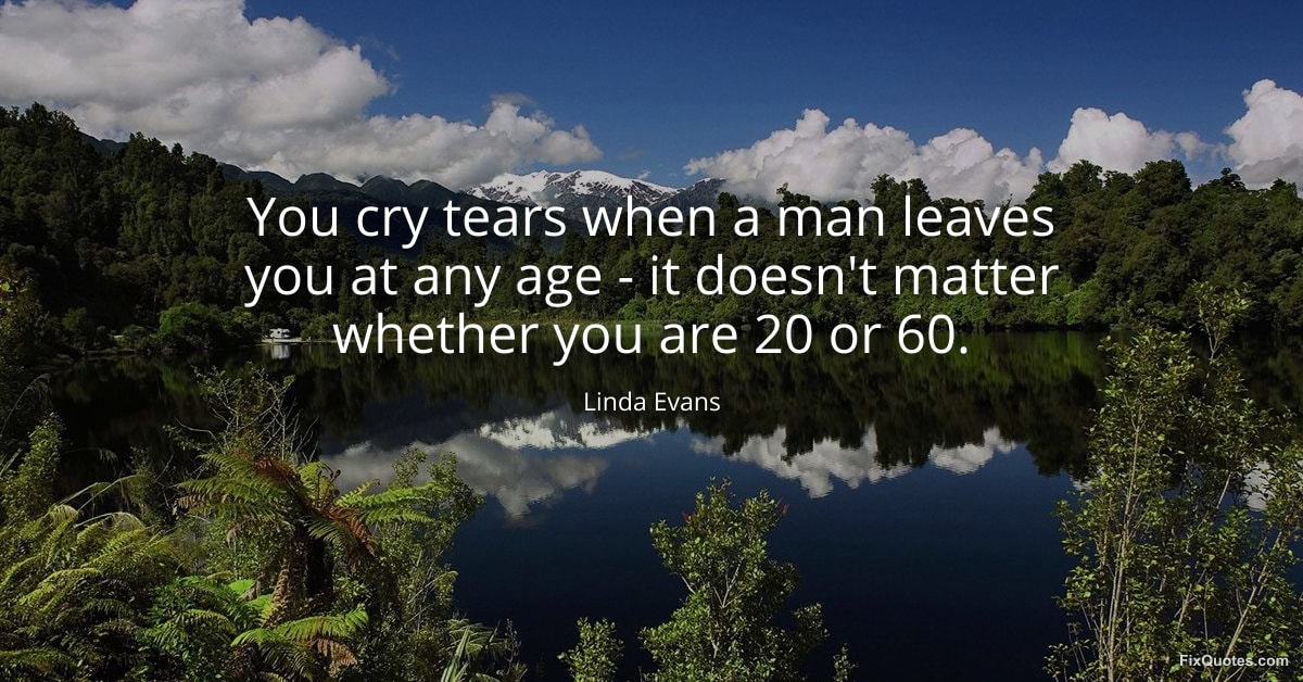 Evans, Linda. (2026, January 16). You cry tears when a man leaves you at any age - it doesn't matter whether you are 20 or 60. FixQuotes. https://fixquotes.com/quotes/you-cry-tears-when-a-man-leaves-you-at-any-age-87286/