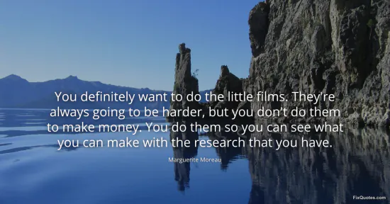 Moreau, Marguerite. (2026, January 16). You definitely want to do the little films. They're always going to be harder, but you don't do them to make money. You do them so you can see what you can make with the research that you have. FixQuotes. https://fixquotes.com/quotes/you-definitely-want-to-do-the-little-films-theyre-104125/