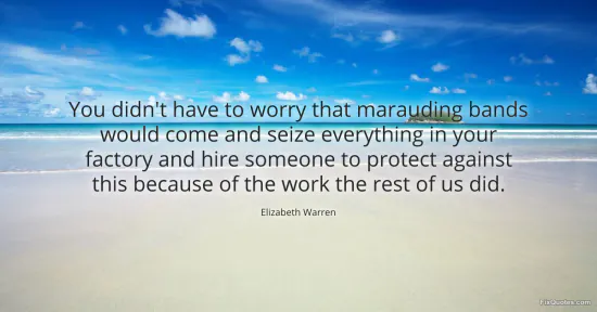 Warren, Elizabeth. (2026, January 16). You didn't have to worry that marauding bands would come and seize everything in your factory and hire someone to protect against this because of the work the rest of us did. FixQuotes. https://fixquotes.com/quotes/you-didnt-have-to-worry-that-marauding-bands-126341/