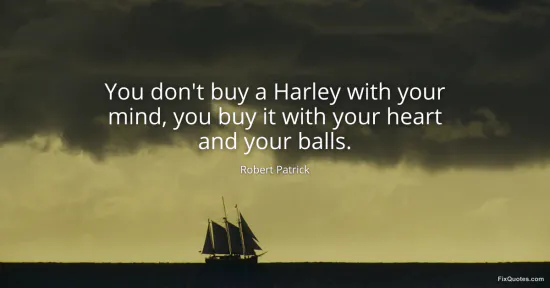 Patrick, Robert. "You don't buy a Harley with your mind, you buy it with your heart and your balls." FixQuotes. January 16, 2026. https://fixquotes.com/quotes/you-dont-buy-a-harley-with-your-mind-you-buy-it-112857/.