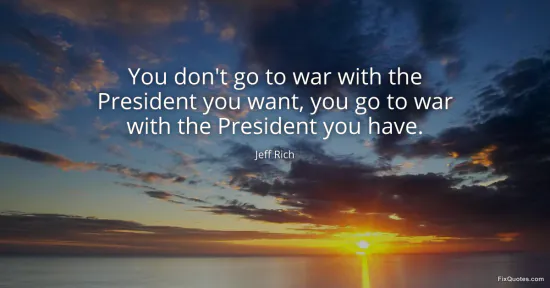Rich, Jeff. (2026, January 18). You don't go to war with the President you want, you go to war with the President you have. FixQuotes. https://fixquotes.com/quotes/you-dont-go-to-war-with-the-president-you-want-21423/