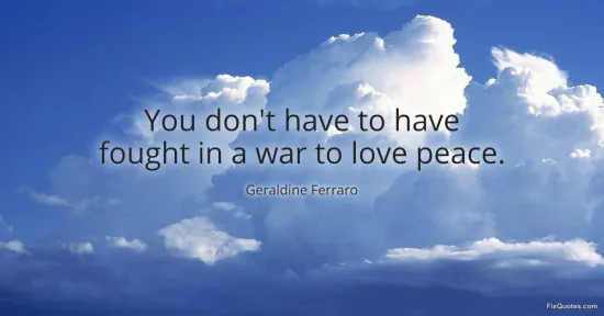 Ferraro, Geraldine. "You don't have to have fought in a war to love peace." FixQuotes. January 15, 2026. https://fixquotes.com/quotes/you-dont-have-to-have-fought-in-a-war-to-love-171294/.