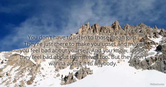 Seyfried, Amanda. "You don't have to listen to those mean girls. They're just there to make you upset and make you feel bad about yourself. And you know, inside, they feel bad about themselves too. But they don't wanna admit it to anybody." FixQuotes. January 17, 2026. https://fixquotes.com/quotes/you-dont-have-to-listen-to-those-mean-girls-62473/.