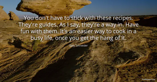 Schneider, Sally. (2026, January 15). You don't have to stick with these recipes. They're guides. As I say, they're a way in. Have fun with them. It's an easier way to cook in a busy life, once you get the hang of it. FixQuotes. https://fixquotes.com/quotes/you-dont-have-to-stick-with-these-recipes-theyre-76756/