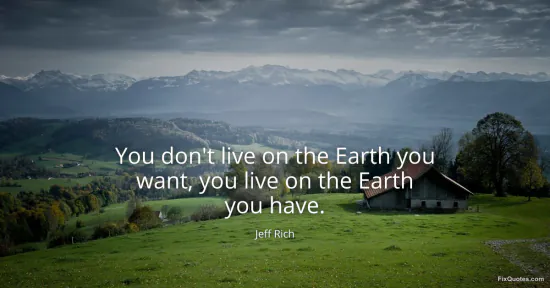 Rich, Jeff. (2026, January 18). You don't live on the Earth you want, you live on the Earth you have. FixQuotes. https://fixquotes.com/quotes/you-dont-live-on-the-earth-you-want-you-live-on-21424/