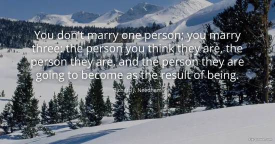 Needham, Richard J. "You don't marry one person; you marry three: the person you think they are, the person they are, and the person they are going to become as the result of being." FixQuotes. February 12, 2026. https://fixquotes.com/quotes/you-dont-marry-one-person-you-marry-three-the-136569/.