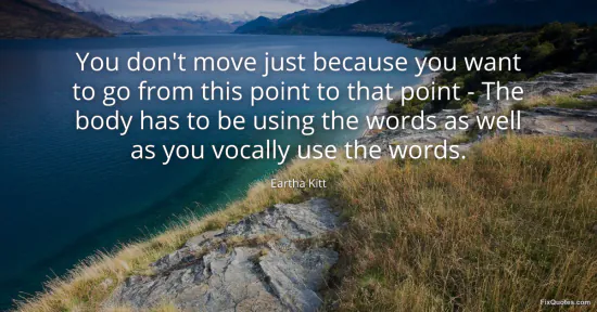 Kitt, Eartha. (2026, February 19). You don't move just because you want to go from this point to that point - The body has to be using the words as well as you vocally use the words. FixQuotes. https://fixquotes.com/quotes/you-dont-move-just-because-you-want-to-go-from-48642/