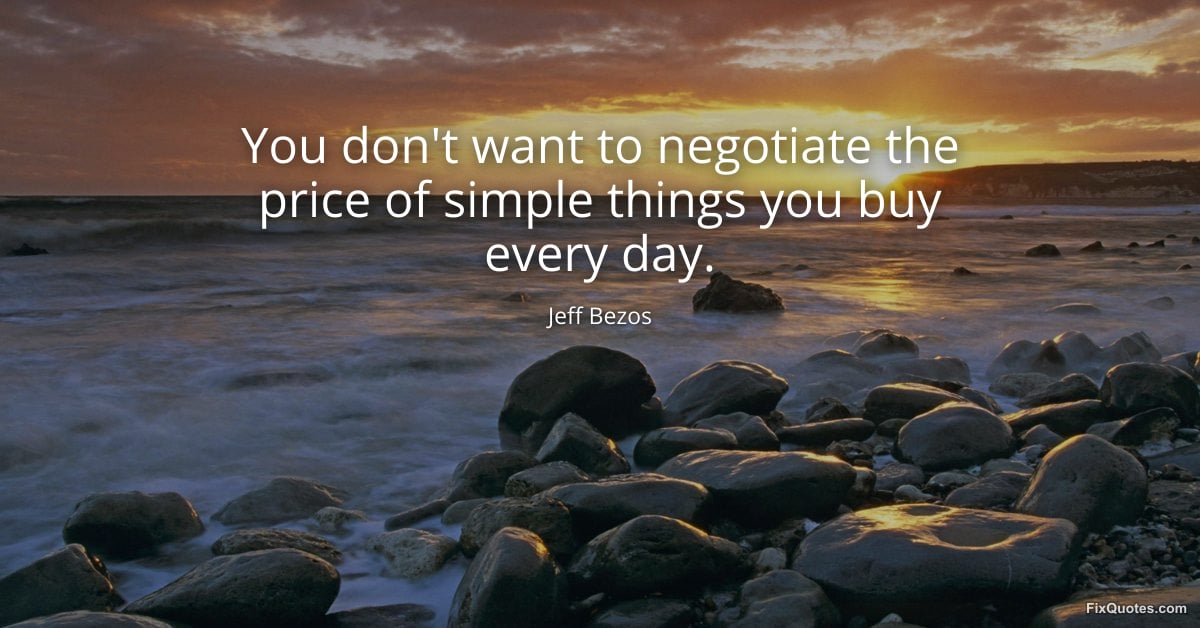 Bezos, Jeff. (2026, March 25). You don't want to negotiate the price of simple things you buy every day. FixQuotes. https://fixquotes.com/quotes/you-dont-want-to-negotiate-the-price-of-simple-186437/