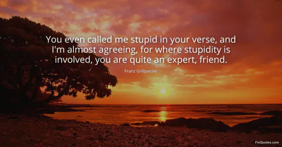 Grillparzer, Franz. (2026, January 15). You even called me stupid in your verse, and I'm almost agreeing, for where stupidity is involved, you are quite an expert, friend. FixQuotes. https://fixquotes.com/quotes/you-even-called-me-stupid-in-your-verse-and-im-140679/