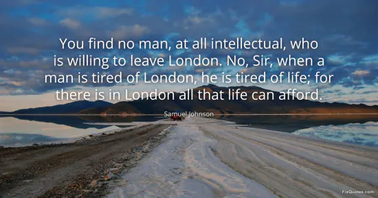 Johnson, Samuel. "You find no man, at all intellectual, who is willing to leave London. No, Sir, when a man is tired of London, he is tired of life; for there is in London all that life can afford." FixQuotes. February 16, 2026. https://fixquotes.com/quotes/you-find-no-man-at-all-intellectual-who-is-21124/.