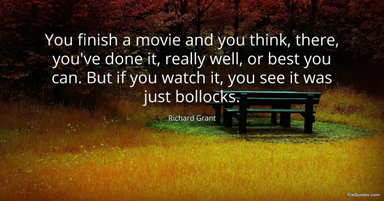 Grant, Richard. "You finish a movie and you think, there, you've done it, really well, or best you can. But if you watch it, you see it was just bollocks." FixQuotes. January 15, 2026. https://fixquotes.com/quotes/you-finish-a-movie-and-you-think-there-youve-done-163074/.