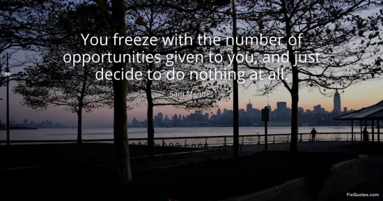 Mendes, Sam. (2026, February 19). You freeze with the number of opportunities given to you, and just decide to do nothing at all. FixQuotes. https://fixquotes.com/quotes/you-freeze-with-the-number-of-opportunities-given-36055/
