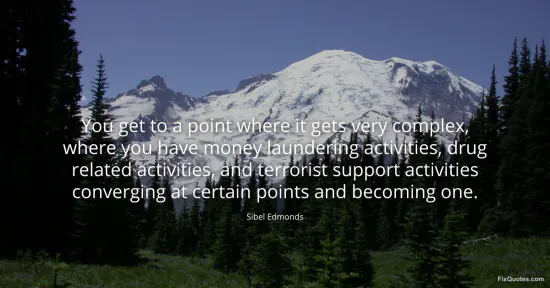 Edmonds, Sibel. (2026, January 16). You get to a point where it gets very complex, where you have money laundering activities, drug related activities, and terrorist support activities converging at certain points and becoming one. FixQuotes. https://fixquotes.com/quotes/you-get-to-a-point-where-it-gets-very-complex-102973/