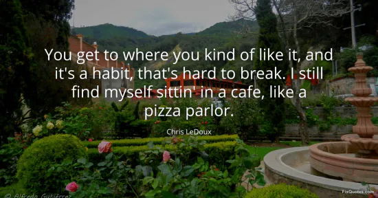 LeDoux, Chris. (2026, February 18). You get to where you kind of like it, and it's a habit, that's hard to break. I still find myself sittin' in a cafe, like a pizza parlor. FixQuotes. https://fixquotes.com/quotes/you-get-to-where-you-kind-of-like-it-and-its-a-59917/