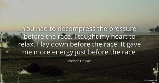 Fittipaldi, Emerson. "You had to decompress the pressure before the race. I taught my heart to relax. I lay down before the race. It gave me more energy just before the race." FixQuotes. January 17, 2026. https://fixquotes.com/quotes/you-had-to-decompress-the-pressure-before-the-61249/.