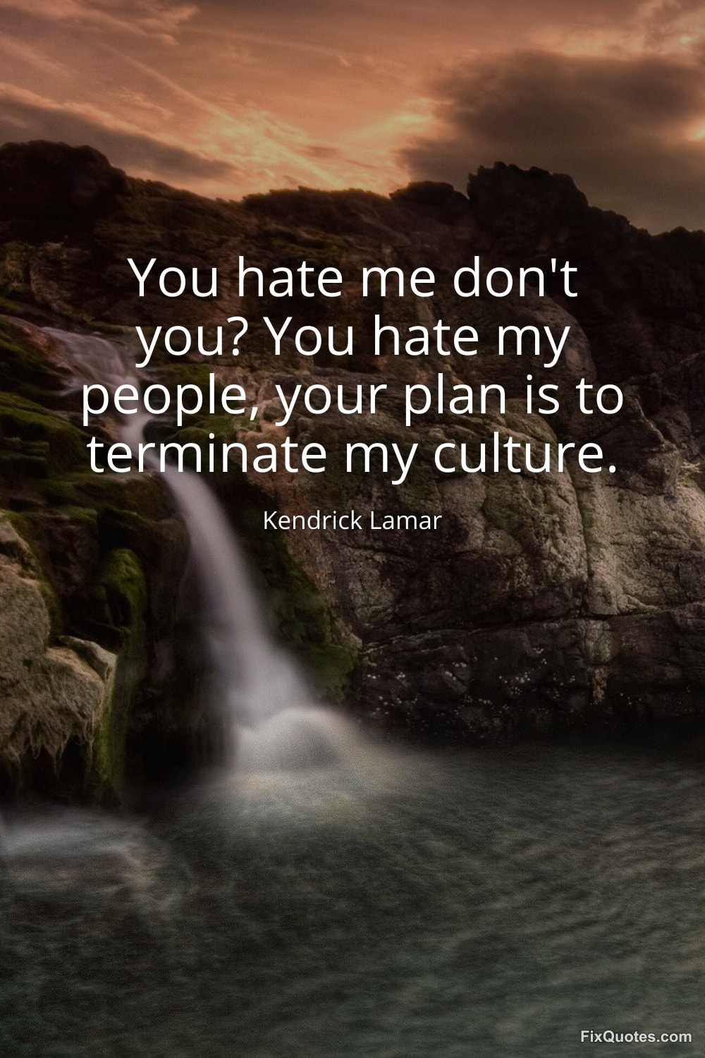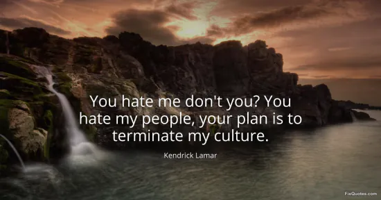 Lamar, Kendrick. "You hate me don't you? You hate my people, your plan is to terminate my culture." FixQuotes. February 1, 2026. https://fixquotes.com/quotes/you-hate-me-dont-you-you-hate-my-people-your-plan-184843/.