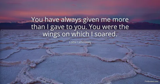 Lehmann, Lotte. "You have always given me more than I gave to you. You were the wings on which I soared." FixQuotes. January 15, 2026. https://fixquotes.com/quotes/you-have-always-given-me-more-than-i-gave-to-you-163225/.