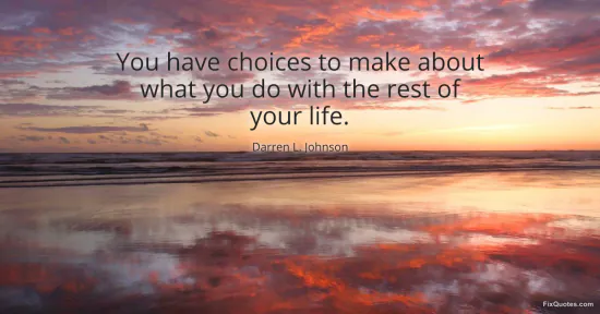 Johnson, Darren L. "You have choices to make about what you do with the rest of your life." FixQuotes. January 17, 2026. https://fixquotes.com/quotes/you-have-choices-to-make-about-what-you-do-with-72804/.