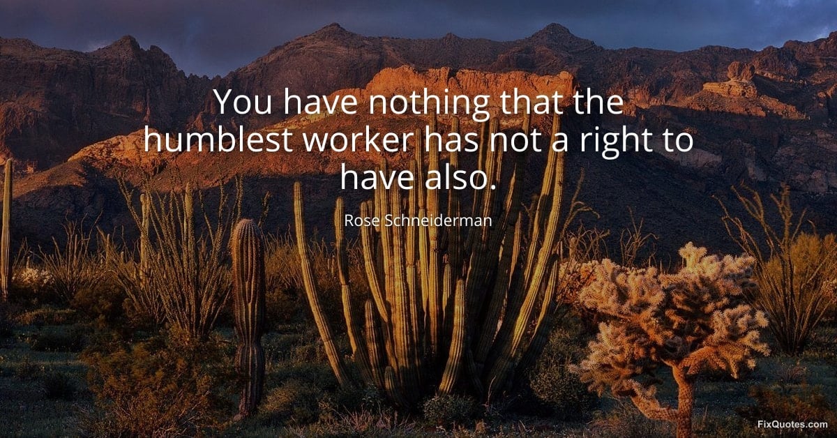 Schneiderman, Rose. (2026, January 17). You have nothing that the humblest worker has not a right to have also. FixQuotes. https://fixquotes.com/quotes/you-have-nothing-that-the-humblest-worker-has-not-65406/