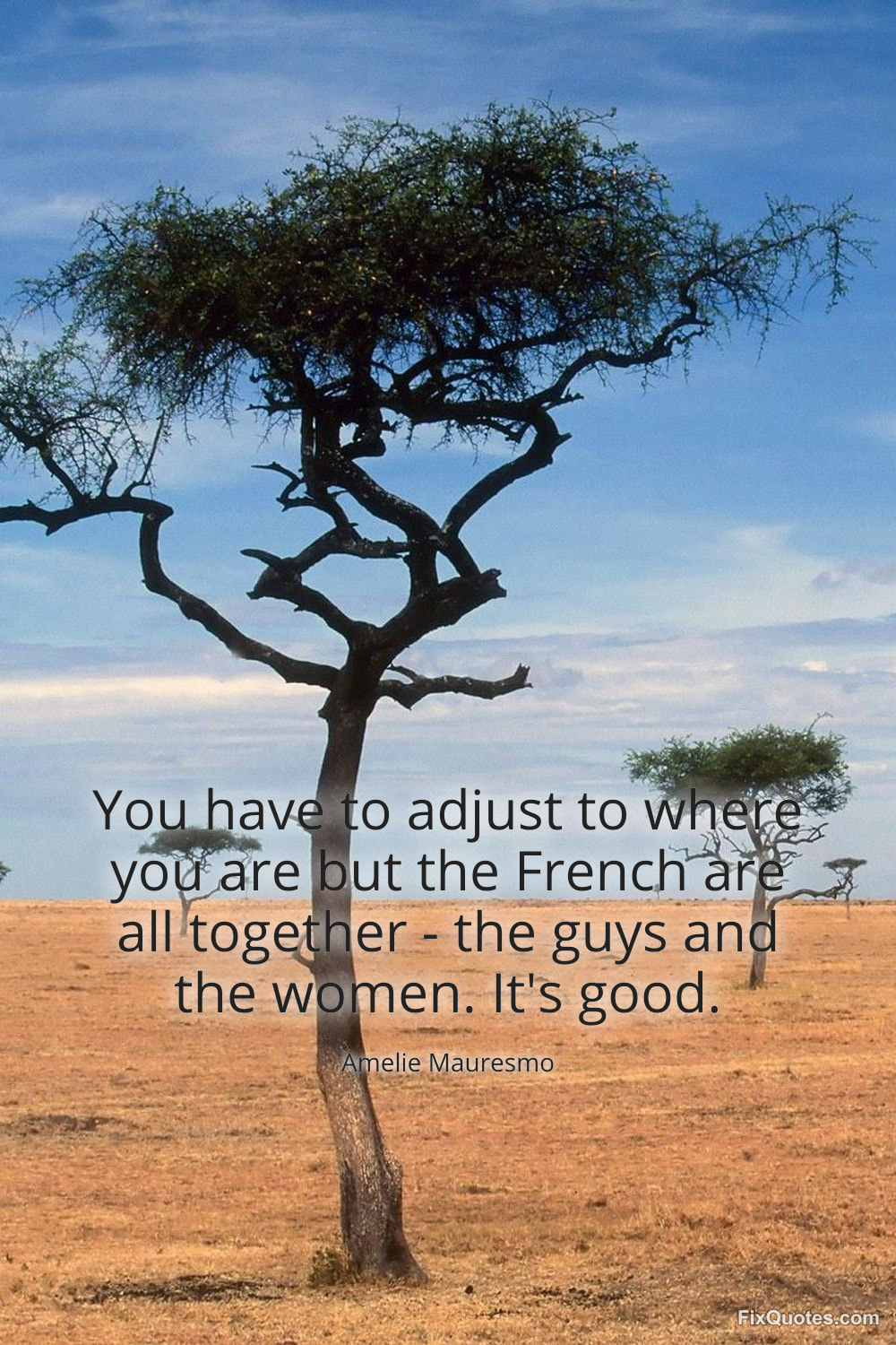 Mauresmo, Amelie. (2026, January 16). You have to adjust to where you are but the French are all together - the guys and the women. It's good. FixQuotes. https://fixquotes.com/quotes/you-have-to-adjust-to-where-you-are-but-the-121518/