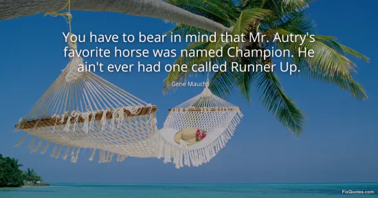 Mauch, Gene. "You have to bear in mind that Mr. Autry's favorite horse was named Champion. He ain't ever had one called Runner Up." FixQuotes. January 17, 2026. https://fixquotes.com/quotes/you-have-to-bear-in-mind-that-mr-autrys-favorite-66158/.