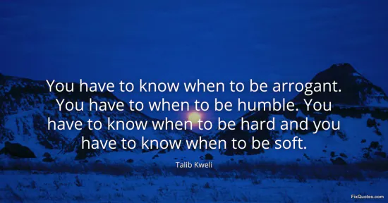 Kweli, Talib. (2026, January 17). You have to know when to be arrogant. You have to when to be humble. You have to know when to be hard and you have to know when to be soft. FixQuotes. https://fixquotes.com/quotes/you-have-to-know-when-to-be-arrogant-you-have-to-65923/
