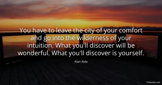 Alda, Alan. (2026, January 15). You have to leave the city of your comfort and go into the wilderness of your intuition. What you'll discover will be wonderful. What you'll discover is yourself. FixQuotes. https://fixquotes.com/quotes/you-have-to-leave-the-city-of-your-comfort-and-go-157635/
