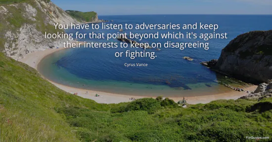 Vance, Cyrus. (2026, January 16). You have to listen to adversaries and keep looking for that point beyond which it's against their interests to keep on disagreeing or fighting. FixQuotes. https://fixquotes.com/quotes/you-have-to-listen-to-adversaries-and-keep-136221/