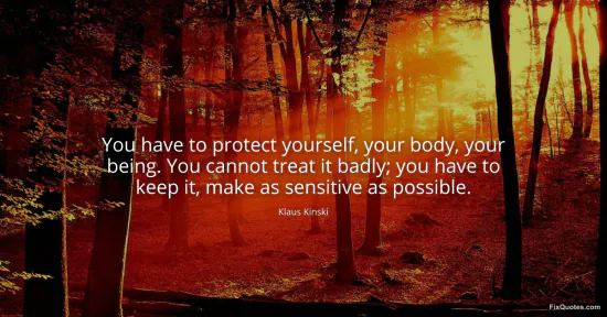 Kinski, Klaus. (2026, January 15). You have to protect yourself, your body, your being. You cannot treat it badly; you have to keep it, make as sensitive as possible. FixQuotes. https://fixquotes.com/quotes/you-have-to-protect-yourself-your-body-your-being-152093/