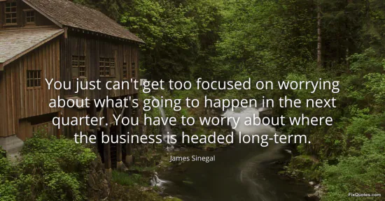 Sinegal, James. "You just can't get too focused on worrying about what's going to happen in the next quarter. You have to worry about where the business is headed long-term." FixQuotes. January 15, 2026. https://fixquotes.com/quotes/you-just-cant-get-too-focused-on-worrying-about-158569/.