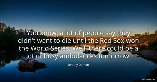Damon, Johnny. "You know, a lot of people say they didn't want to die until the Red Sox won the World Series. Well, there could be a lot of busy ambulances tomorrow." FixQuotes. January 17, 2026. https://fixquotes.com/quotes/you-know-a-lot-of-people-say-they-didnt-want-to-80440/.