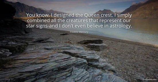 Mercury, Freddie. "You know, I designed the Queen crest. I simply combined all the creatures that represent our star signs-and I don't even believe in astrology." FixQuotes. January 17, 2026. https://fixquotes.com/quotes/you-know-i-designed-the-queen-crest-i-simply-35204/.