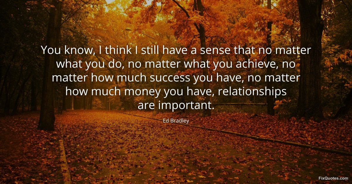 Bradley, Ed. (2026, January 17). You know, I think I still have a sense that no matter what you do, no matter what you achieve, no matter how much success you have, no matter how much money you have, relationships are important. FixQuotes. https://fixquotes.com/quotes/you-know-i-think-i-still-have-a-sense-that-no-53238/