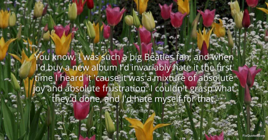 Partridge, Andy. (2026, January 15). You know, I was such a big Beatles fan, and when I'd buy a new album I'd invariably hate it the first time I heard it 'cause it was a mixture of absolute joy and absolute frustration. I couldn't grasp what they'd done, and I'd hate myself for that. FixQuotes. https://fixquotes.com/quotes/you-know-i-was-such-a-big-beatles-fan-and-when-id-140226/