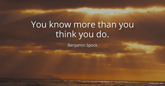 Spock, Benjamin. (2026, January 17). You know more than you think you do. FixQuotes. https://fixquotes.com/quotes/you-know-more-than-you-think-you-do-37654/