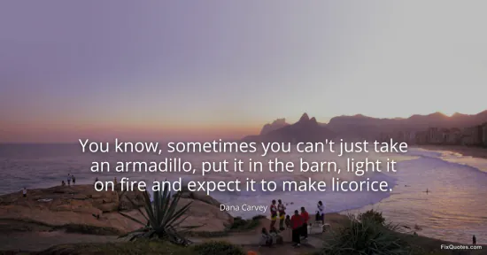 Carvey, Dana. (2026, January 15). You know, sometimes you can't just take an armadillo, put it in the barn, light it on fire and expect it to make licorice. FixQuotes. https://fixquotes.com/quotes/you-know-sometimes-you-cant-just-take-an-173480/