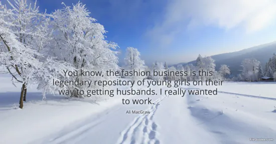 MacGraw, Ali. "You know, the fashion business is this legendary repository of young girls on their way to getting husbands. I really wanted to work." FixQuotes. January 17, 2026. https://fixquotes.com/quotes/you-know-the-fashion-business-is-this-legendary-37236/.