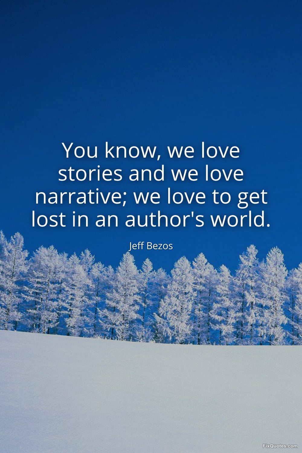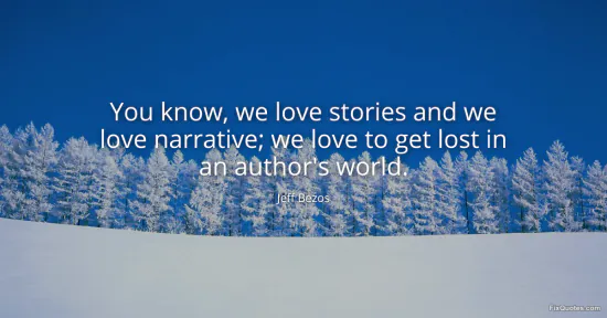 Bezos, Jeff. (2026, March 25). You know, we love stories and we love narrative; we love to get lost in an author's world. FixQuotes. https://fixquotes.com/quotes/you-know-we-love-stories-and-we-love-narrative-we-186470/