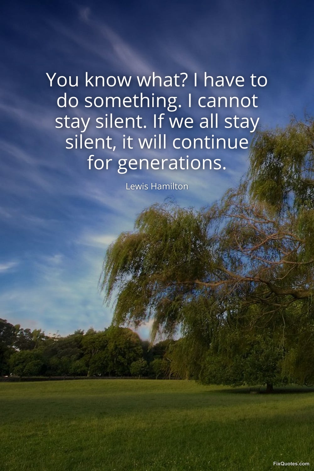Hamilton, Lewis. "You know what? I have to do something. I cannot stay silent. If we all stay silent, it will continue for generations." FixQuotes. March 17, 2026. https://fixquotes.com/quotes/you-know-what-i-have-to-do-something-i-cannot-186123/.