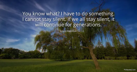 Hamilton, Lewis. (2026, March 17). You know what? I have to do something. I cannot stay silent. If we all stay silent, it will continue for generations. FixQuotes. https://fixquotes.com/quotes/you-know-what-i-have-to-do-something-i-cannot-186123/