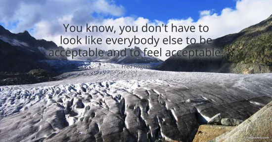 Rogers, Fred. "You know, you don't have to look like everybody else to be acceptable and to feel acceptable." FixQuotes. January 16, 2026. https://fixquotes.com/quotes/you-know-you-dont-have-to-look-like-everybody-115168/.